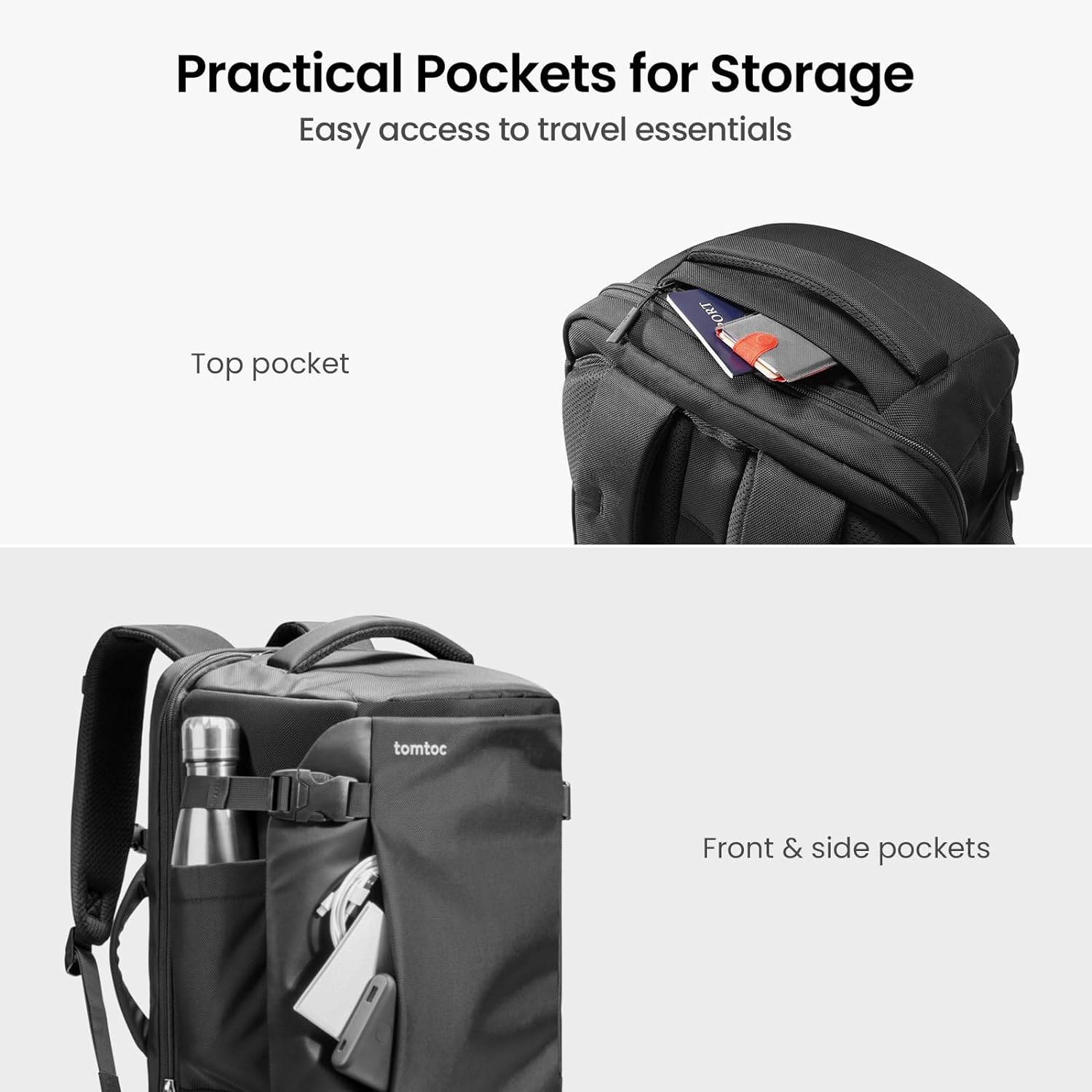 The Travel Backpack 40L features multiple pockets and compartments to keep you organized on the go. The front zippered pocket is perfect for storing small items like keys, phone, and wallet, while the side pockets are ideal for water bottles or umbrellas.
